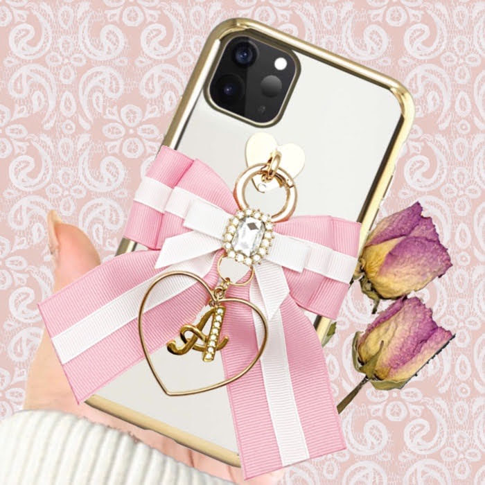 ↑ 多色のリボン・26文字のアルファベット・イニシャル・チャームから選べる ●【送料無料】スマホケース 携帯ケース スマホリング バンカーリング リボン カラー ビジュー ゴールド シルバー パーツ 選べる オリジナル 誕生日 記念 結婚祝い プレゼント ギフト ライブ コンサート アイテム 可愛い 大人可愛い ゆめかわいい エレガント おしゃれ キラキラ 女の子 子供 スマホケースもファッションの一部の時代に女の子の大好きが詰まったオリジナルオーダーケース・リボン・ホルダー・リング・ビジュー・チャーム iPhone6 iPhone6s iPhone7 iPhone8 iPhone7Plus iPhone8Plus iPhoneX iPhoneXs iPhoneXsMax iPhoneXR iPhone11 iPhone11Pro iPhone11ProMax iPhone12mini iPhone12 iPhone12Pro iPhone12ProMax ♡自分色に選べるから満足感に満たされる♡ 商品名 バレリーナ ハートフープ付き iPhone クリアケース サイズ ケース:適合機種をご参照ください。