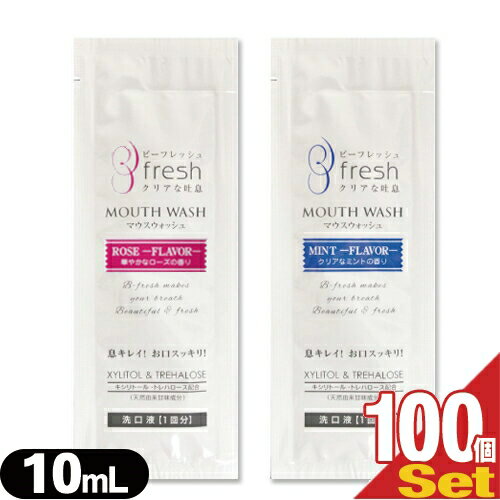 【1個当たり税込み20円】【ホテルアメニティ】【携帯用マウスウォッシュ】【個包装】マウスウォッシュ ビーフレッシュ(MOUTH WASH B fresh) パウチ 10ml (ローズの香り・ミントの香り) × 100個セット - 気になるお口の息を瞬間にさわやかな息へ
