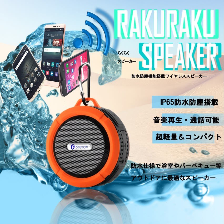 防水 高音質 ワイヤレス スピーカー 《グリーン》 Bluetooth コンパクト 持ち運び 携帯 音声通話可能 カラビナ[定形外郵便、送料無料、代引不可]