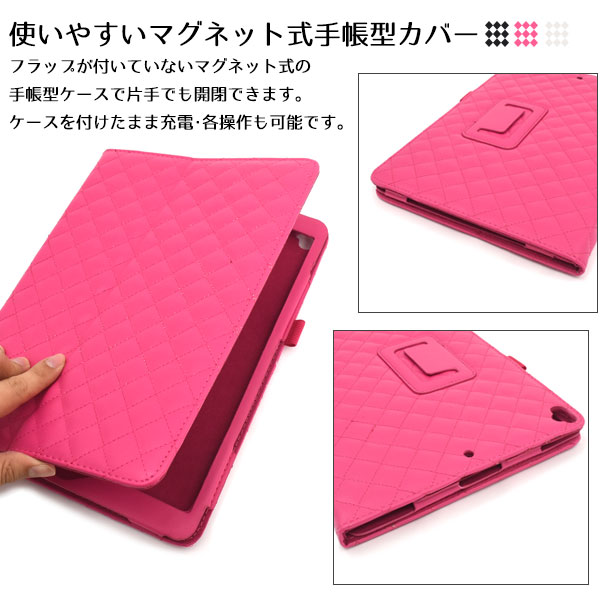 触り心地抜群のキルティングレザーを使用した、オシャレなデザイン!また、ボディだけでなく、タッチパネルも保護する手帳タイプです。