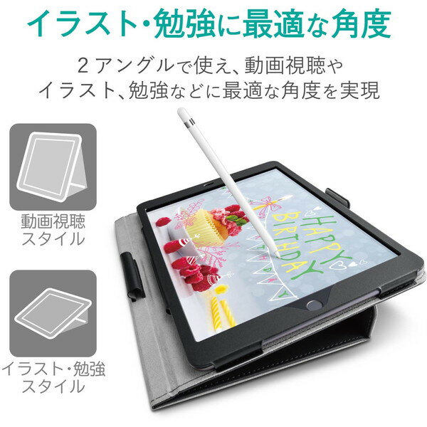 ドローイングに最適なアングルにできる、Apple Pencilが収納できるiPad 10.2インチ 2020年モデル、iPad 10.2インチ 2019年モデル用ソフトレザーケースです。