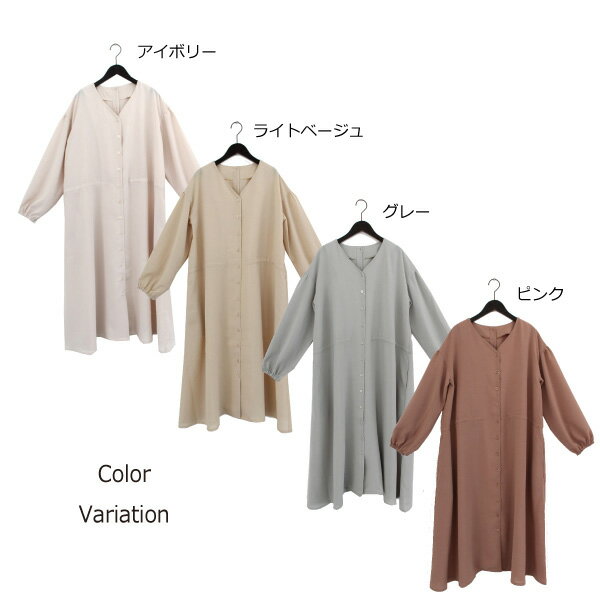 【あす楽対応】ワンピース 春 きれいめ スタンダート ロング 長袖 マキシ丈 無地 ガウン 後開き 前釦 スマートカジュアル 40代 レディース アイボリー ライトベージュ グレー ピンク