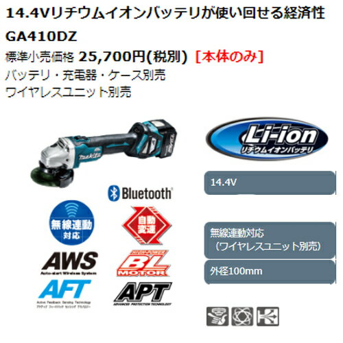 マキタ 100mm充電式ディスクグラインダ(変速ダイヤル付)(スライドスイッチタイプ) GA410DZ 14.4V(本体のみ)