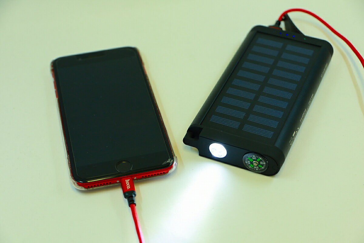ソーラーで自動充電できるのでアウトドア、外出時でも効率よく電力を備えます。