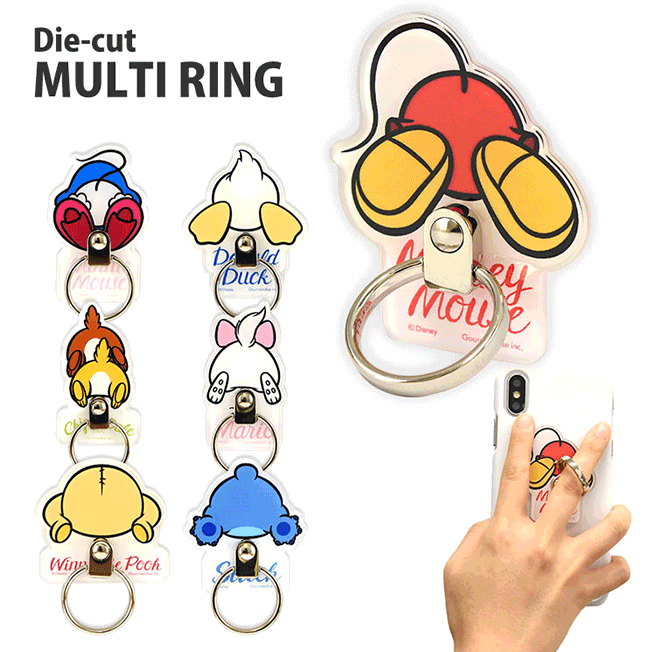 ディズニーキャラクター/OSHIRI KAWAII ダイカットマルチリング ディズニーキャラクターデザインのマルチリングが登場! キャラごとのお尻のデザインがとってもかわいいダイカット! リングに指を通してスマートフォンの落下防止に! スタンドにもなるから動画視聴にも便利! リングは360°回転します。