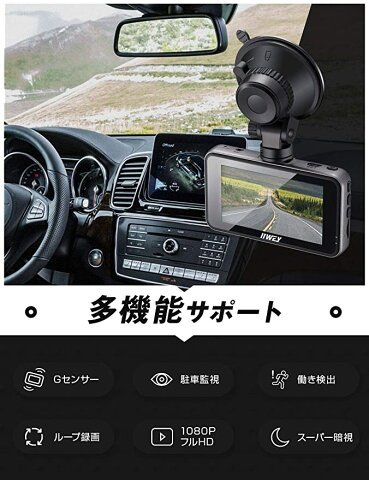 【多機能搭載】WDR、G-センサー、動体検知、駐車監視、上書き保存などな機能を搭載しています。