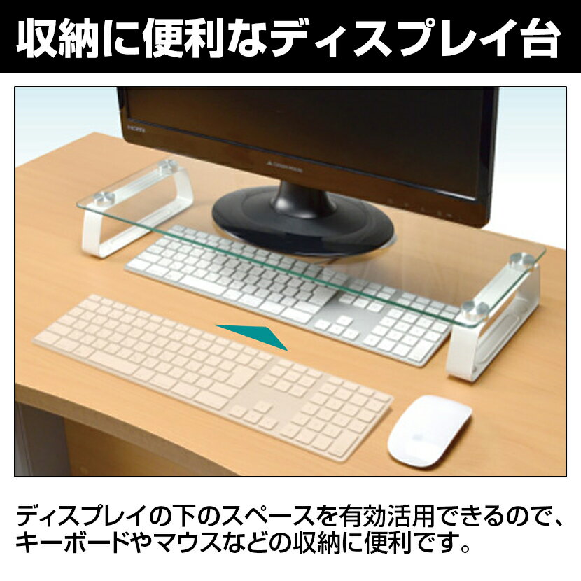 ディスプレイ台 強化ガラスタイプメタルスタンド 560x210x80mm キーボードやマウスを収納できる強化ガラスディスプレイ台大型のディスプレイやテレビにも対応 商品について サイズ幅560×奥行210×高さ80mm 耐荷重20kg 材質天板 / 強化ガラス、アルミ足 / 鉄 本体重量1.8kg 付属品取り付けネジ×4、六角棒レンチ、滑り止めクッション×4 配送について 日付・時間指定についてお届け日の指定はできますが(日曜祝日以外)、お時間のご指定は出来ません。