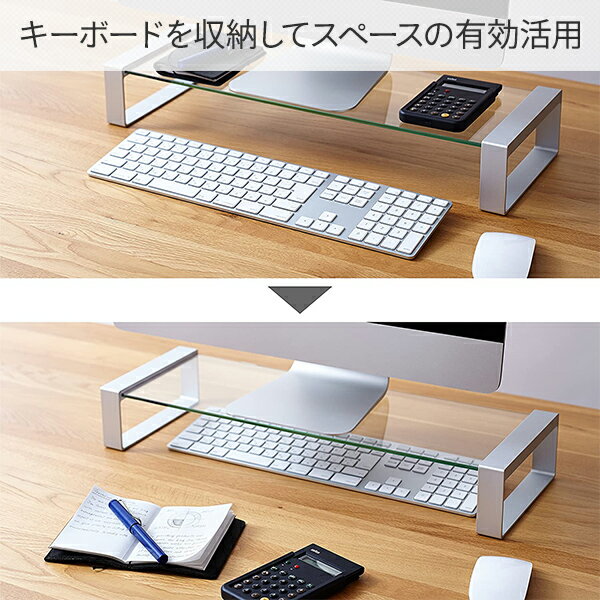 キングジム KING JIM スタイリッシュ モニタースタンド ガラス天板 幅58cm 奥行22 RY8511 本体サイズ 幅55×奥行19×高さ8.5cm 重量1.7kg 材質 天板:強化ガラス脚:アルミニウム 仕様 ●原産国:中国●組立品です●組立時間:約10-20分 商品説明 ●高級感のある強化ガラス製天板のデスク上スタンド●キーボードを収納してスペースの有効活用●ボードの下のものも確認可能●脚部は高級感のある金属製●脚部にガラスボードを挟むだけの簡単組立●メーカー保証期間1年 商品補足説明 YAMAZEN ヤマゼン 山善 通販,モニタースタンド モニター台 PCモニタースタンド 液晶モニター台 液晶モニタースタンド ディスプレイスタンド 机上ラック 机上台 机上 収納 キーボード収納 ノートパソコン収納 隙間収納 すき間収納 隙間ラック すき間ラック 電話台 ファックス台 プリンター台 卓上ラック 卓上台 卓上スタンド ガラス ガラス製 金属製 アルミニウムデスク ランキング