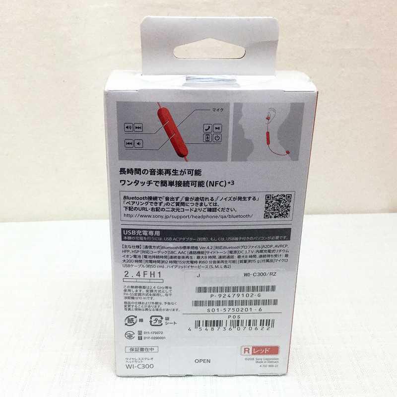 【未使用中古品・未開封】 ソニー / SONY WI-C300 ワイヤレスステレオヘッドセット bluetooth 2018年製 レッド 10008564