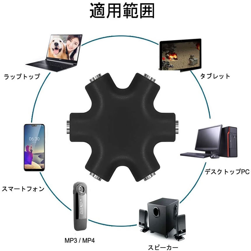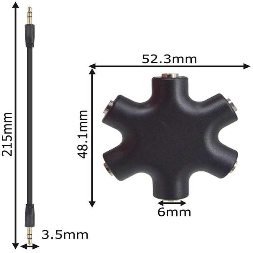 3.5mmイヤフォンジャック分配器 マルチイヤホンスプリッターイヤホン分配/分岐 3.5オーディオ5出力6端子メス接続器 3.5mmステレオ延長線付き (黒) IYABUNN