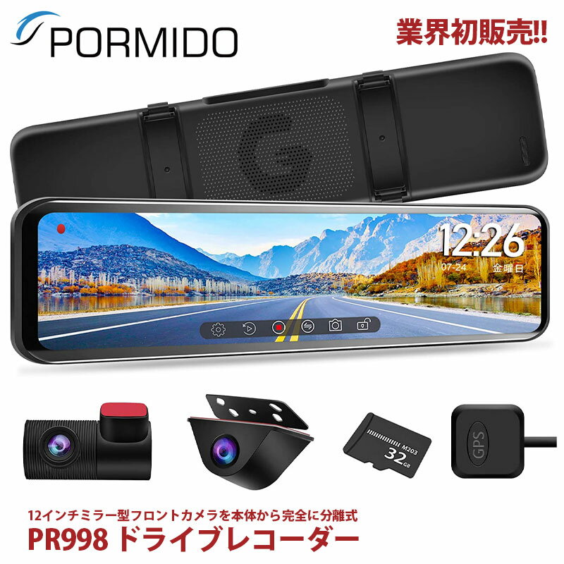PORMIDO ドライブレコーダー ミラー型 前後カメラ 【業界初販売12インチフロントカメラを本体から完全に分離式】【ソニーIMX335セン