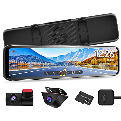 Changerドライブレコーダー ミラー型 前後カメラ【12インチ右ハンドル仕様】【12月最新版日本音声コントロール】ドライブレコーダー