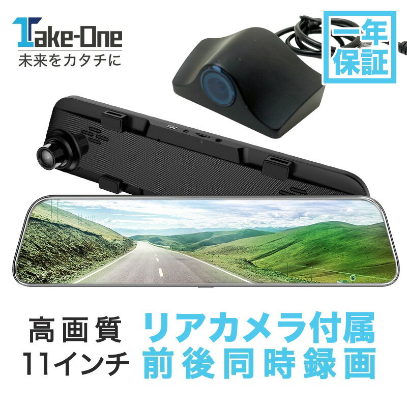 【DEAL20%ポイントバック】レビュー特典あり ドラレコ ミラー型 ドライブレコーダー SDカード64GBセット 2カメラ 前後カメラ Take-One テイクワン D50 ルームミラー型 あおり対策 事故 記録 大画面 11インチ 高画質 雨天 夜間 広角 1年保証 一人暮らし 家電 母の日ギフト