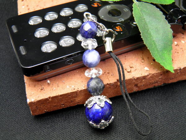 ラピスラズリ&ソーダライト使用 パワーストーンの携帯ストラップ メンズ/レディース 天然石のストラップ ギフト ペア使用 厄除け/お守り 携帯ストラップ/イヤホンジャックアクセサリー・スマートフォン