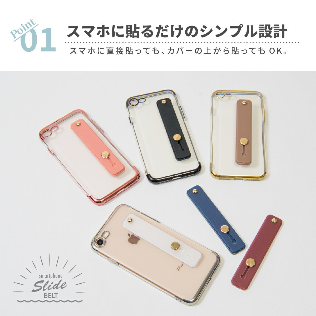 【送料無料】スマホリング スマホベルト iPhone おしゃれ 落下防止 片手 落下 かわいい 韓国 グリップ スマホ スマホスタンド スライドベルト Android 全機種 シンプル 全機種対応 フラット くすみカラー 大人可愛い スマホに貼るだけのお洒落で可愛いスライドベルト!カバーありでもなしでも簡単装着◎幅広のベルトで安定感抜群です。